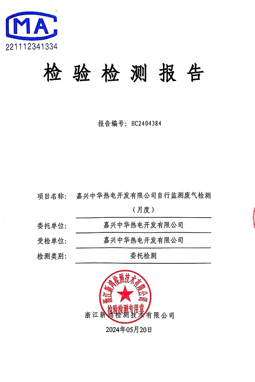 • 中華熱電12月廢氣檢測(cè)報(bào)告