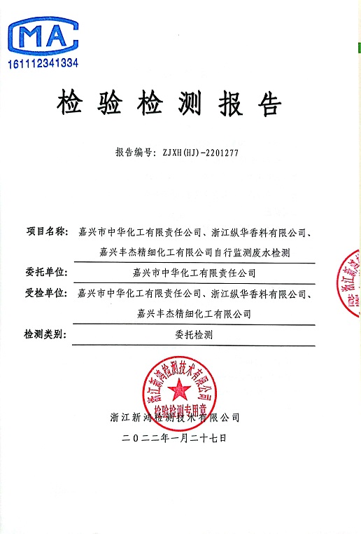 報(bào)告名稱:中華化工、縱華、豐杰2022年1季度廢水檢測(cè)報(bào)告
