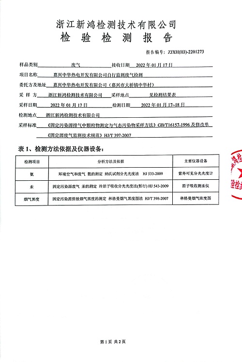 報告名稱:中華熱電2022.1月廢氣檢測報告