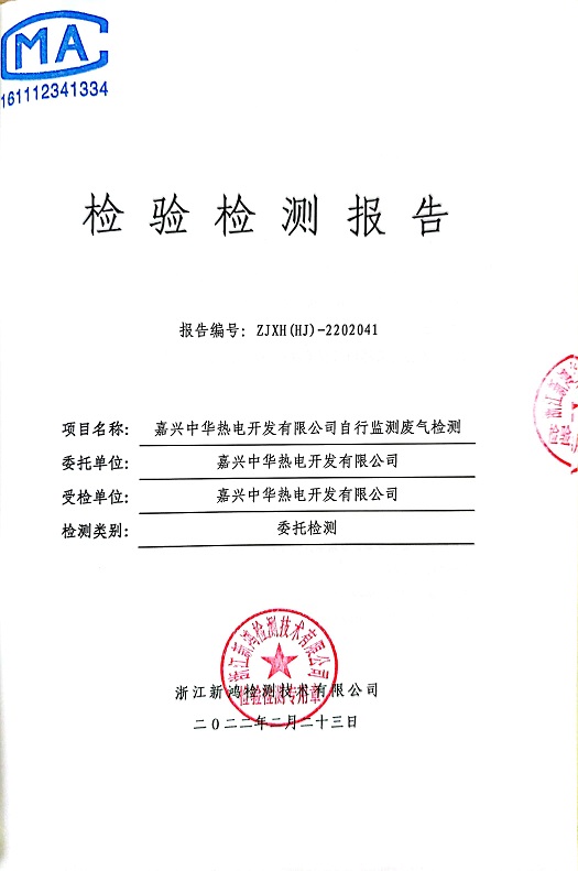報(bào)告名稱:中華熱電2022.2月廢氣檢測(cè)報(bào)告