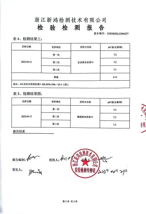 報告名稱:中華熱電2023.4廢水檢測報告