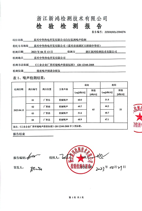 - 中華熱電3季度噪聲檢測報(bào)告