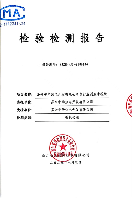 報(bào)告名稱:中華熱電2023.6月廢水檢測報(bào)告