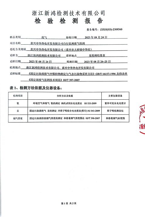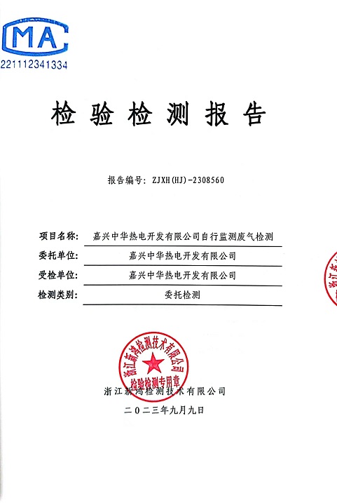 報(bào)告名稱:中華熱電2023.8月廢氣檢測報(bào)告