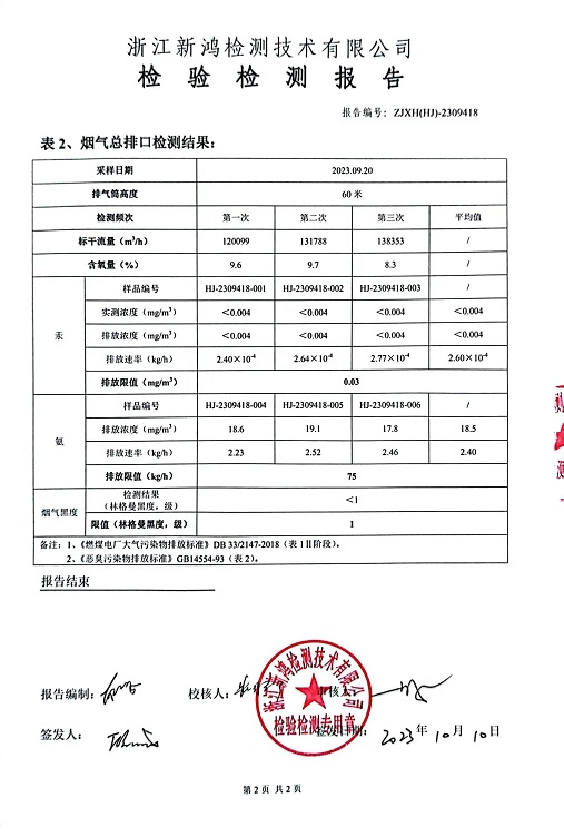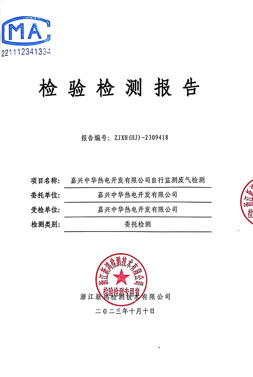 報告名稱:中華熱電2023.9月廢氣檢測報告
