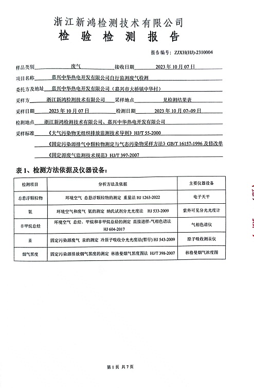 報告名稱:中華熱電2023.10廢氣檢測報告