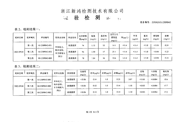 報告名稱:中華化工、縱華、豐杰2023.3季度廢水檢測報告