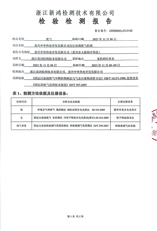 報(bào)告名稱:中華熱電2023.11月廢氣檢測報(bào)告