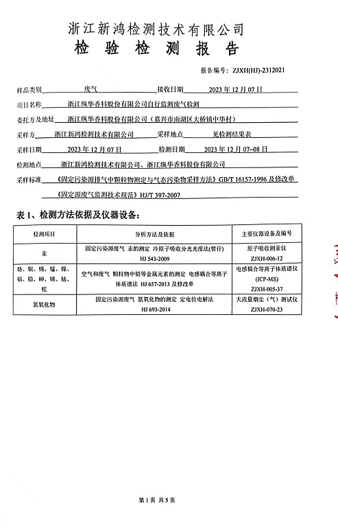 報(bào)告名稱:縱華2023.12月廢氣檢測(cè)報(bào)告
