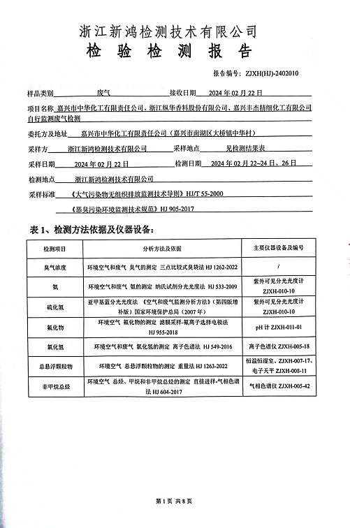報(bào)告名稱:2024年中華化工1季度廠界檢測(cè)報(bào)告