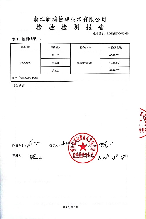 報(bào)告名稱:2024年中華熱電3月廢水檢測(cè)報(bào)告