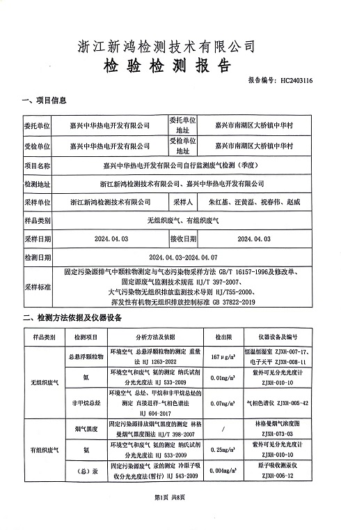 報(bào)告名稱:2024年中華熱電4月廢氣檢測(cè)報(bào)告