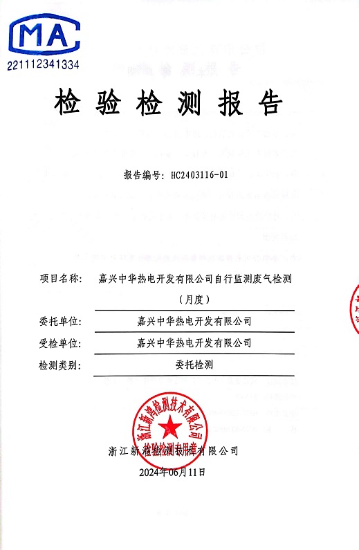 報告名稱:2024年中華熱電6月廢氣檢測報告