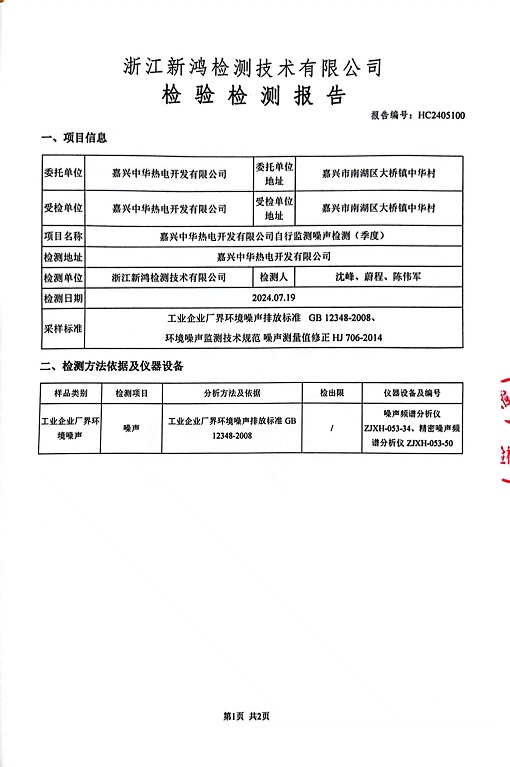 - 中華熱電3季度噪聲檢測(cè)報(bào)告