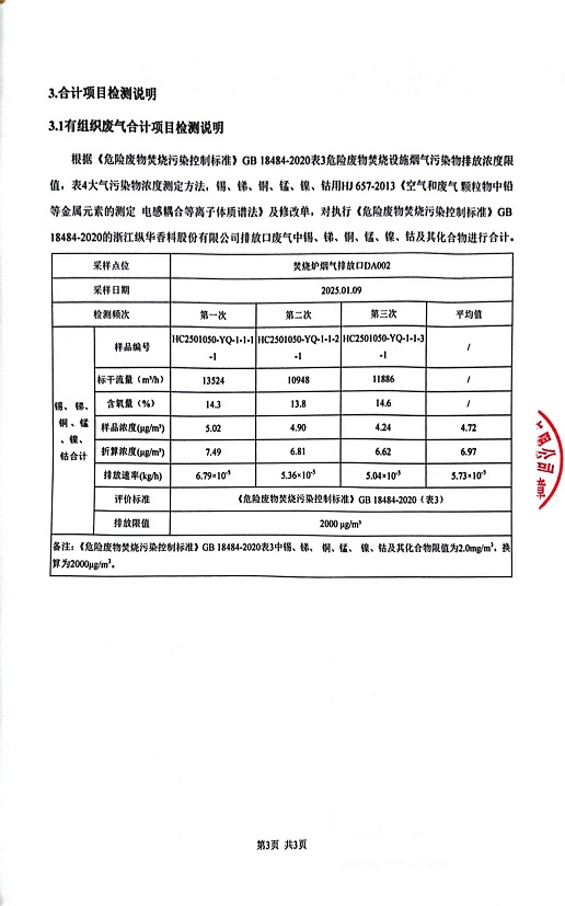 報(bào)告名稱:2025年1月縱華香料煙氣檢測(cè)報(bào)告