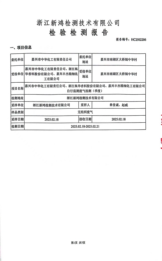 報(bào)告名稱:中華化工、縱華、豐杰2025年1季度廠界檢測(cè)報(bào)告