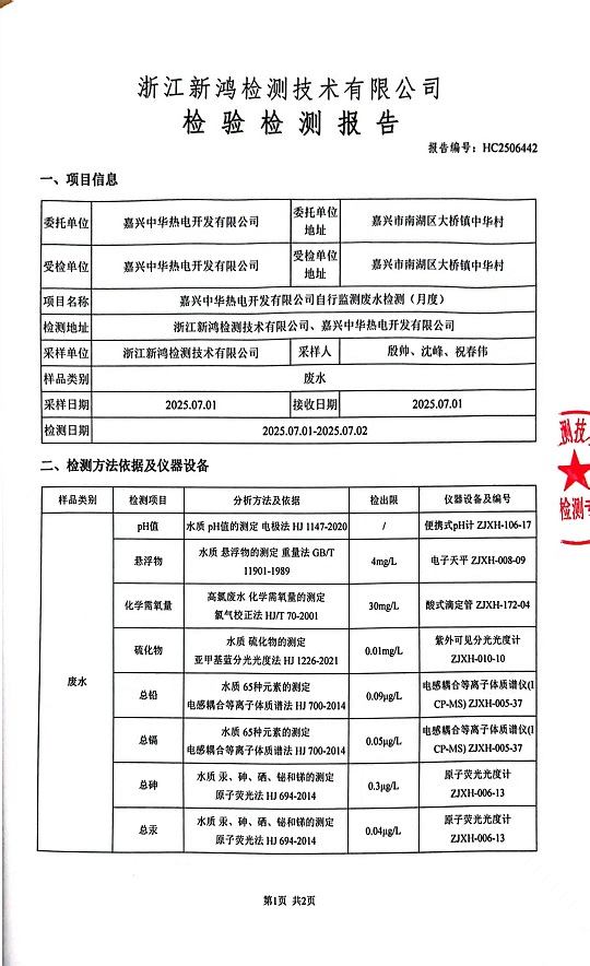 - 中華熱電7月廢水檢測(cè)報(bào)告