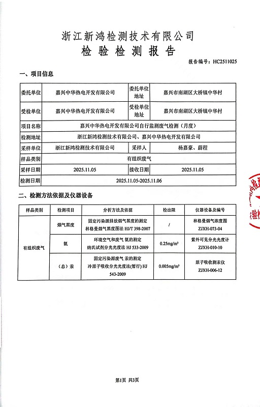 - 中華熱電11月廢氣檢測報(bào)告